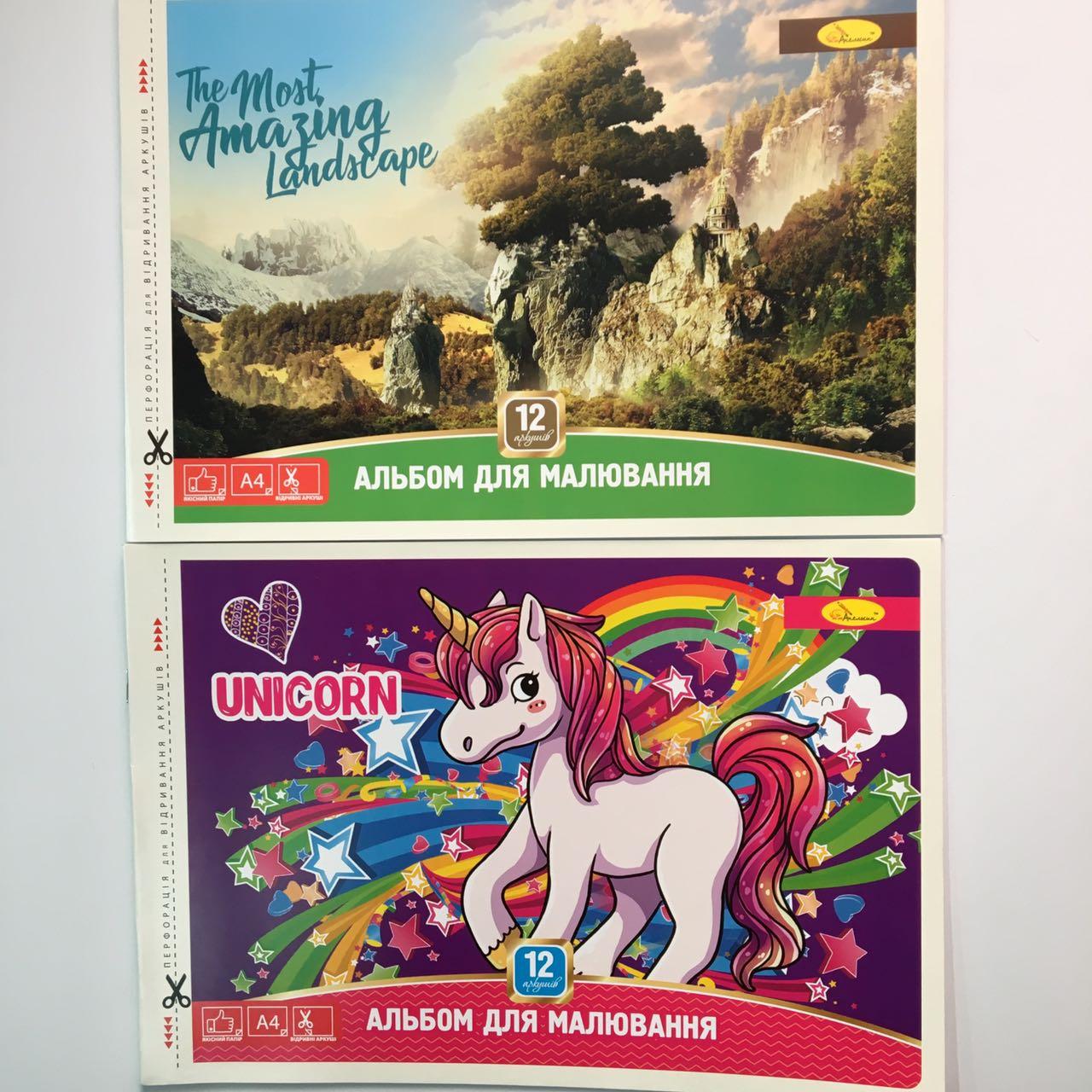 Альбом для малювання 12 аркушів 120 г/м2 скоба із перфорацією. Аркуші легко відривати для оформлення наступного малюнка. Виробник Україна